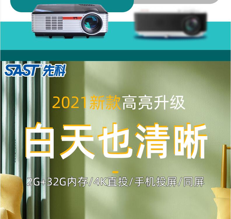 先科投影儀家用臥室小型 便攜4k超高清一體機可連手機投影電視高清1080p智能家庭影院辦公會議培訓教學投影機